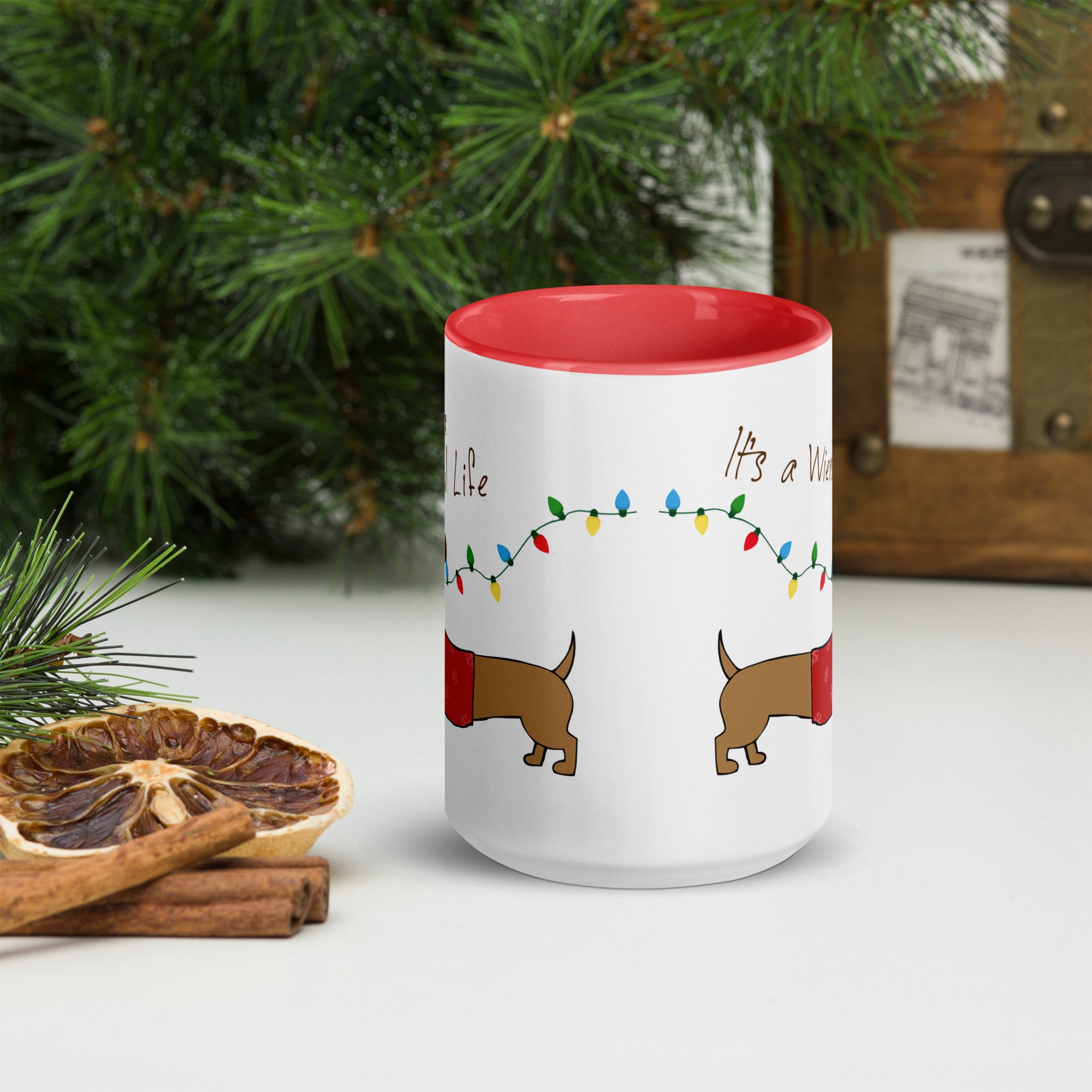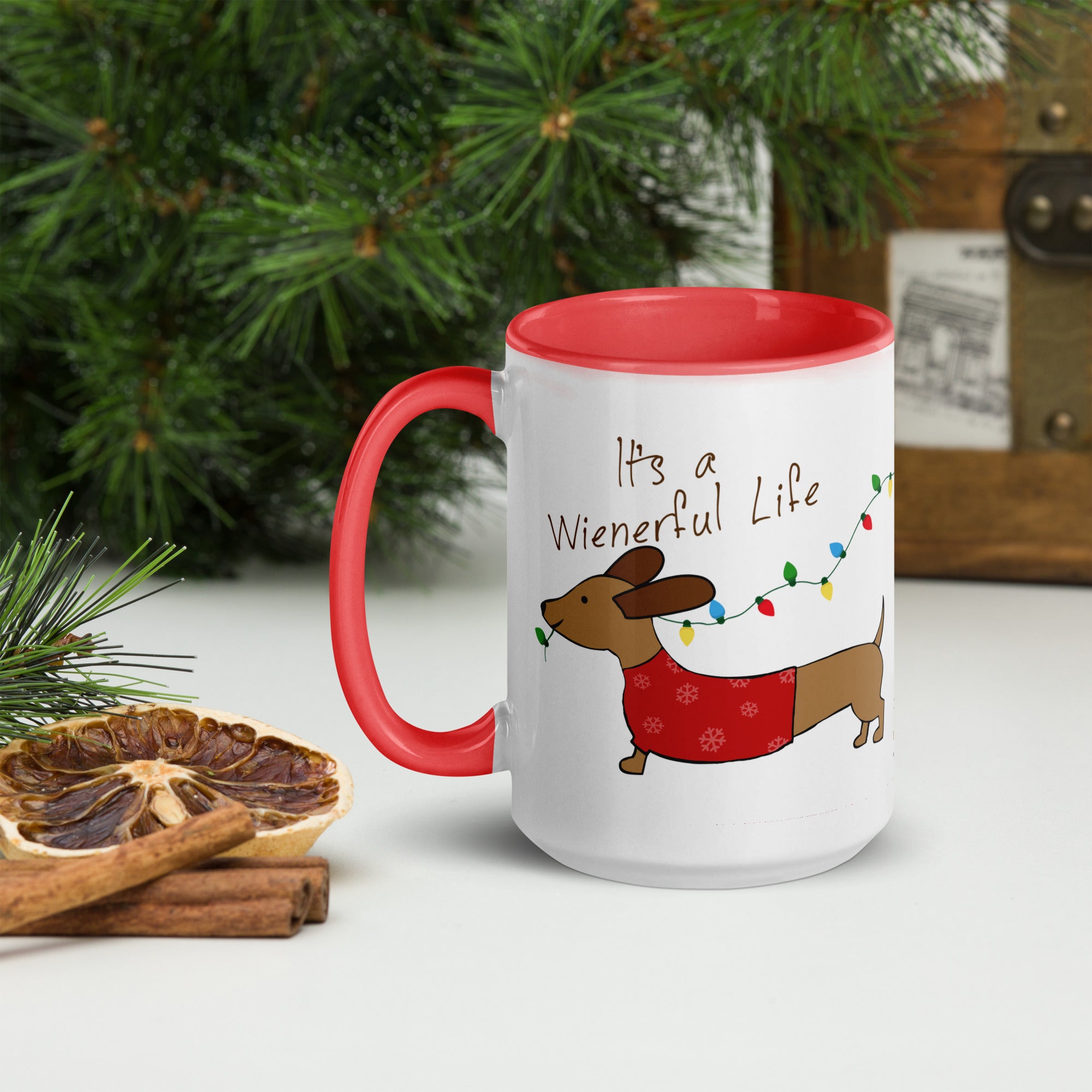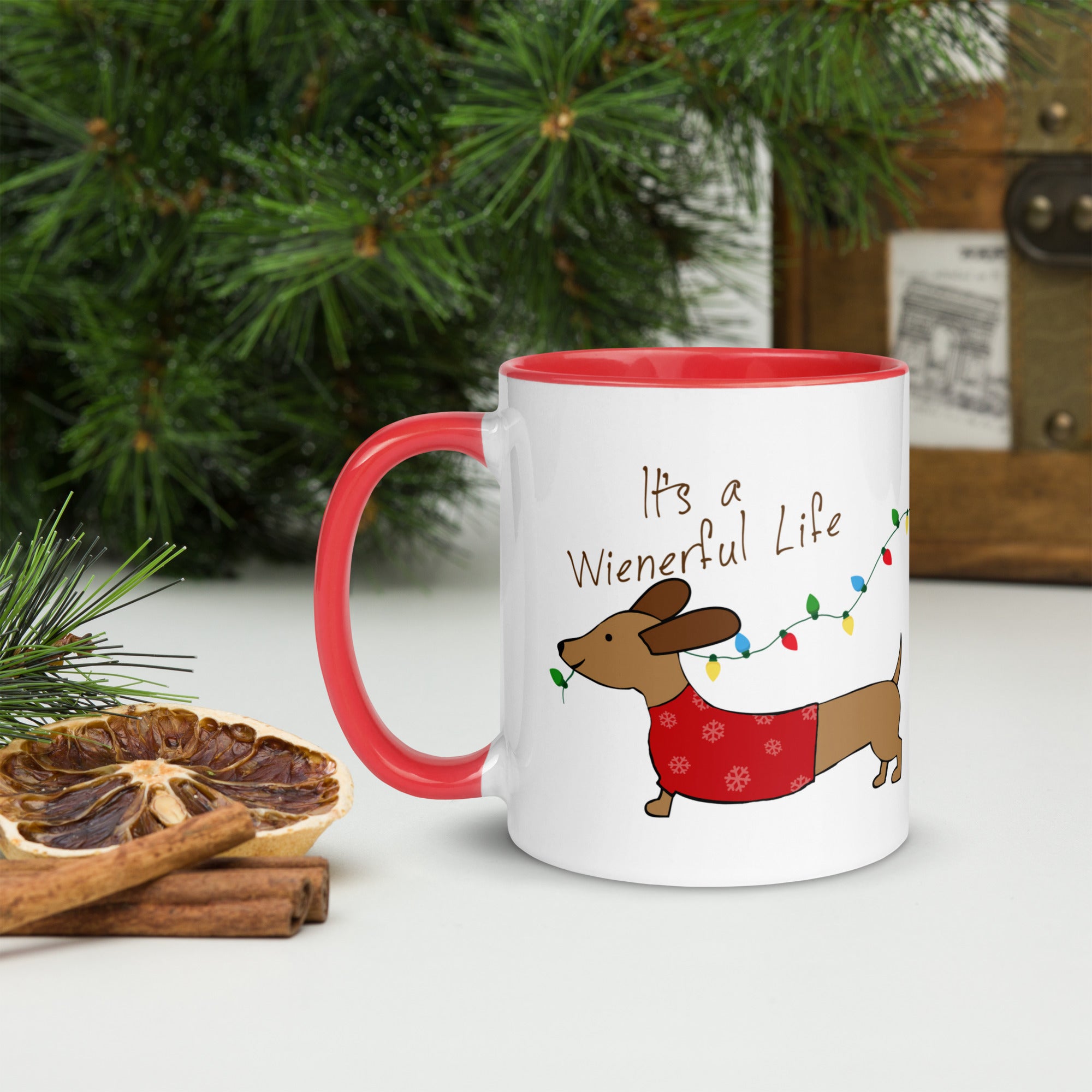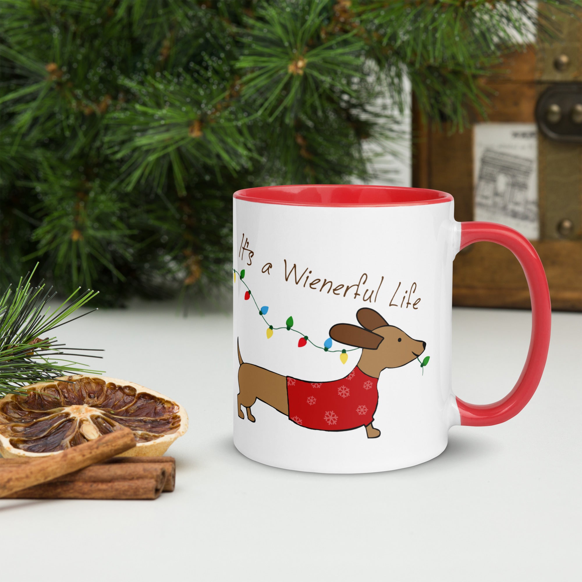 Get ready to celebrate the holidays with a dash of dachshund delight! The "It's a Wienerful Life" Dachshund Christmas Mug is a must-have for every wiener dog enthusiast. Featuring a charming illustration of a festive doxie wrapped in Christmas lights, this mug is perfect for sipping your favorite winter beverages. Whether you're a die-hard sausage dog fan or shopping for one, this merry mug adds a sprinkle of doxie magic to every cup of cheer! 🎄🐾☕ #WienerDogWonder #DoxieDelight #SausageDogSeason